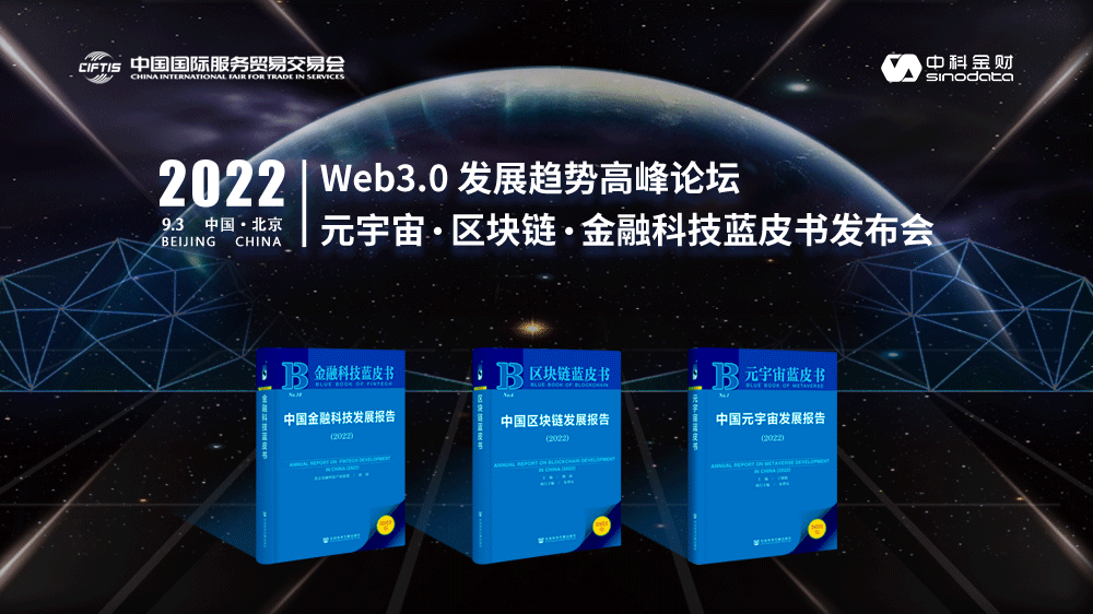 中证网讯(王珞)2022年9月3日,由中国社会科学院社会科学文献出版社、北京金融科技产业联盟指导,由北京区块链技术应用协会(BBAA)主办,北京中科金财科技股份有限公司承办的“Web 3.0发展趋势高峰论坛暨2022元宇宙、区块链、金融科技蓝皮书发布会”在中国国际服务贸易交易会上成功举办。