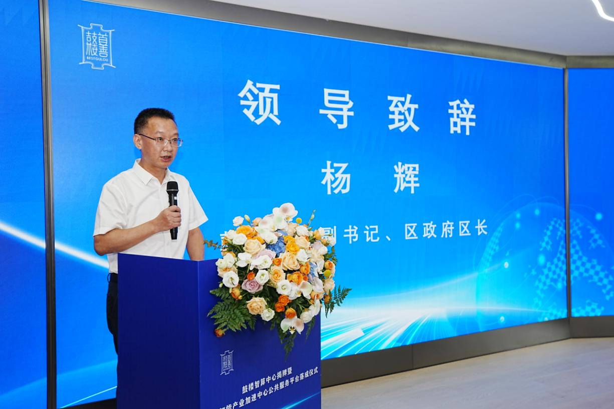 鼓楼区委副书记、区政府党组书记、区长杨辉为本次活动致辞,他表示,“鼓楼智算中心暨人工智能产业加速中心公共服务平台的成立,是鼓楼数字经济发展的一个新里程碑,也是加快构建现代化产业体系的重要举措。我们将坚持‘平台支撑、要素赋能、场景牵引、源头培育、辐射带动’,以算力互联互通助力新质生产力发展,以数据融通、开发利用贯穿城市全域数字化转型始终,更好促进数字技术和实体经济深度融合,加快打造数字应用第一区。”