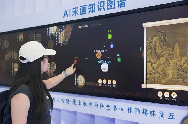 记者在现场了解到,AI宋画知识图谱融合知识百科、知识检索、关联分析、智能问答等丰富的功能,观众说出一句简单指令,短短数秒就可以创作出一幅宋画,从而帮助观众全方位、深入地了解文物、作者及背后的历史语境,加深对中华优秀传统文化的认知与认同。
