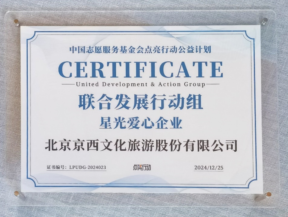 北京文化荣膺“联合发展行动组 星光爱心企业”称号(图片来源:北京文化)