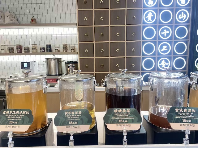 “富贵·香山十二令” 门店售卖的中药茶饮 本报记者 黄一灵 摄