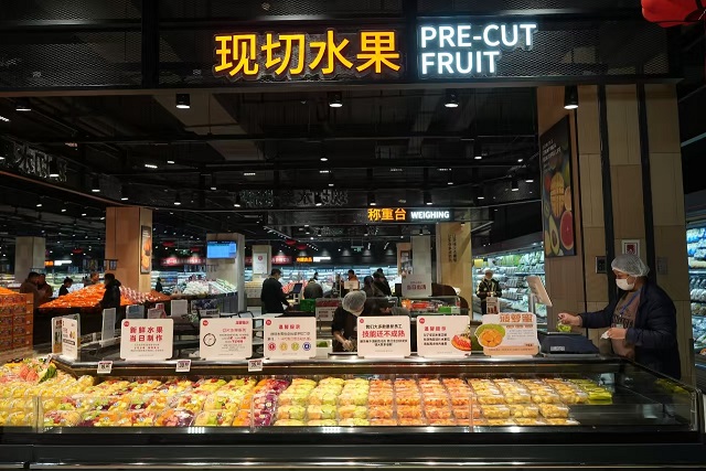 “考虑到现在很多消费者对于糖的摄入十分在意,因此在现切水果组合产品中,我们按照水果甜度高低标明了最佳食用顺序。”负责该区域的工作人员告诉记者,还有一个细节是,考虑到生鲜袋难以撕开的问题,其在生鲜区域连卷袋旁也配备了湿手器。