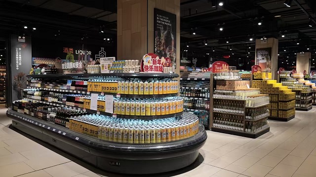 “在货架设置方面,中岛货架高度由原来的2米至2.4米统一调整为1.6米,层数从8层至9层精简到5层至6层。”永辉超市金山万达店相关负责人告诉记者,这一人性化的改变,不仅方便不同身高的消费者轻松拿取商品,同时也让超市上方空间显得更加开阔,各区域划分一目了然,消费者能够轻松找到蔬菜、水果、肉类、烘焙、酒水、食品等不同品类区域,极大地提升了购物效率与体验感。