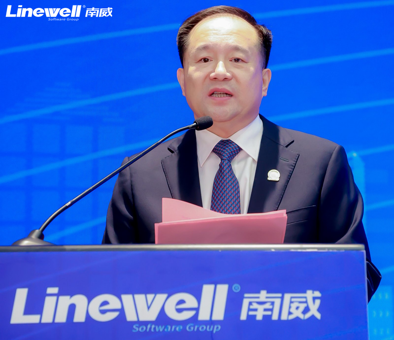 中国软件行业协会副理事长、福建省软件行业协会会长、南威软件集团董事长吴志雄致辞(图片来源:南威软件)
