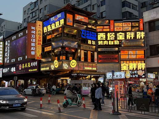 夜幕降临,西塔街区灯火通明,别有一番风味。“大家都喜欢晚上来逛。尤其周末,游客特别多,生意明显比工作日忙不少。不少人会站在我这个位置,以街对面的网红店面为背景拍照留念。”摄影师张峰(化名)边为游客拍照边对中国证券报记者说。