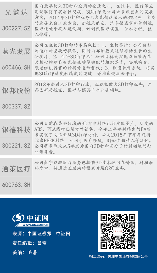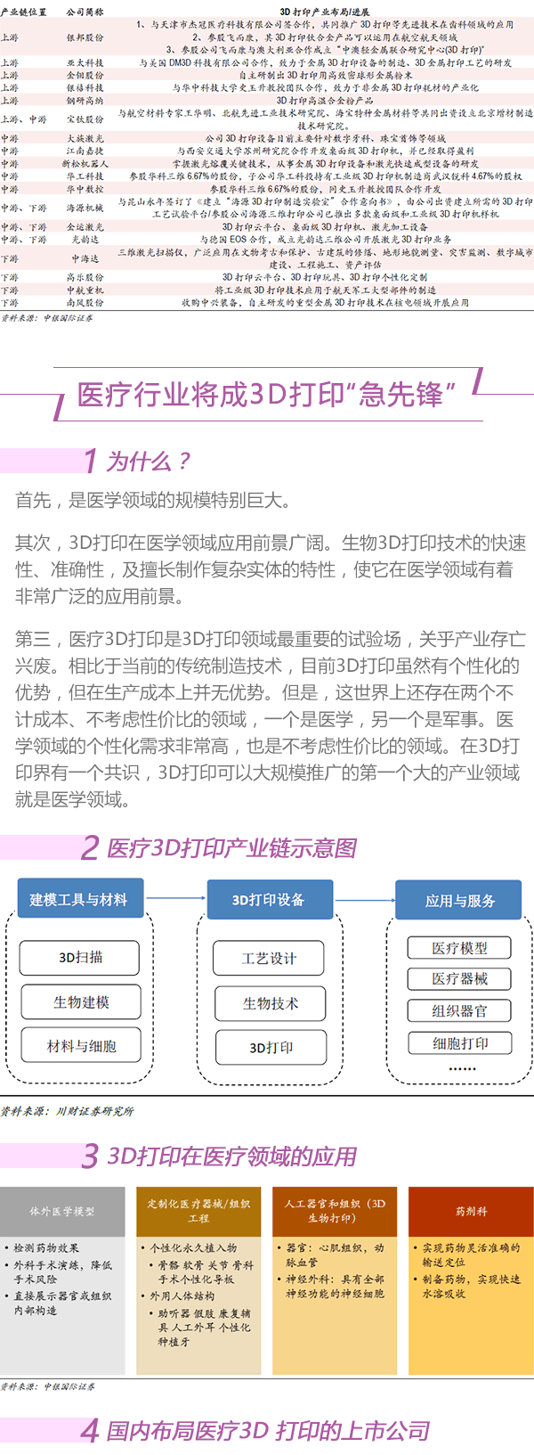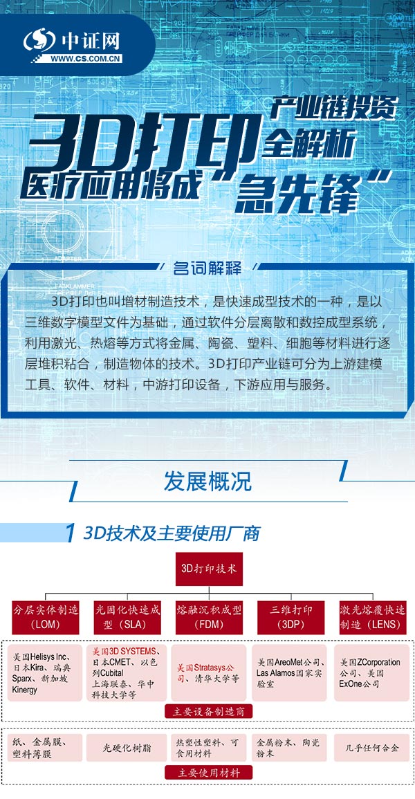 3D打印产业链投资全解析 医疗应用将成“急先锋”