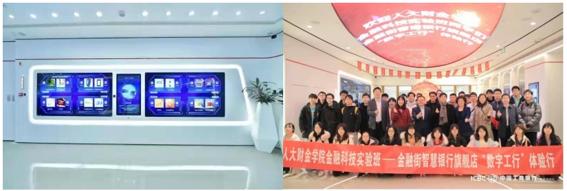 左图:北京分行投教基地集中宣教区展示大屏,右图:北京分行与中国人民大学在投教基地联合举办田野课堂