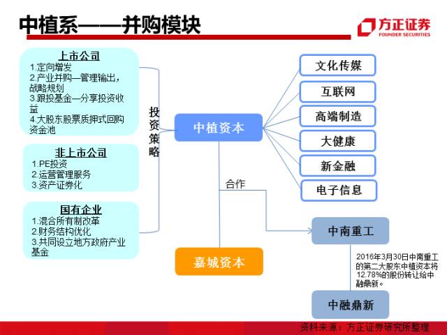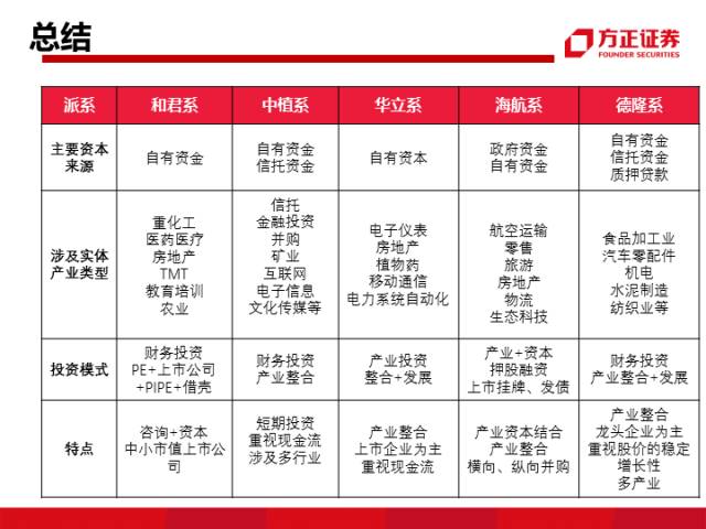基金君今天看到方正证券老师写了一份研报,里面分析了我国的产业并购的几个资本派系,里面有:安邦系、硅谷天堂系、和君系、中植系、德隆系、复星系、华立系、紫光系、海航系等。值得一看。