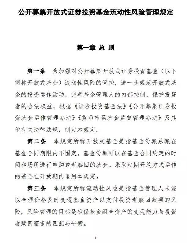 重磅突发!备受行业关注的针对开放式基金流动性管理办法,时隔征求意见稿发布五个月之后,《公开募集开放式证券投资基金流动性风险管理规定》(简称《管理规定》)在今日正式出台!自2017年10月1日正式施行。