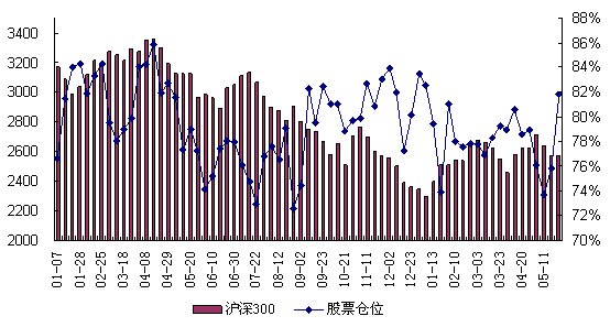 图1:近期指数走势与开放式偏股型基金仓位变动