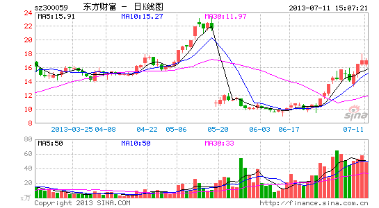 此前,公司跟风“余额宝”概念推出的“活期宝”概念也被市场主力作为噱头而屡屡爆炒。自6月25日以来,东方财富股价多次出现异动,10个交易日内曾4次涨停,区间涨幅近六成。今年以来,在沪深两市年内股价创出新高的逾40只强劲个股中,东方财富以263.11%的涨幅高居榜首。