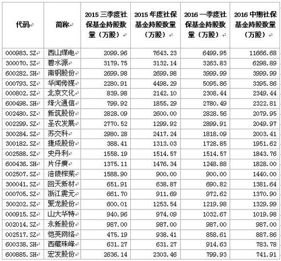 另外,从参与热情看,目前西山煤电、恺英网络、山大华特、浙江震元、涪陵电器、襄阳轴承6家公司均同时得到了3只社保基金的同时重仓。如西山煤电,二季度末的前十大流通股东中,同时出现了社保基金108组合、111组合、112组合三个身影。其中,社保108组合二季度增持了公司1199.99万股股份,社保111组合、112组合则是在二季度对公司进行了新建仓持有。观察西山煤电上半年的业绩情况,46.08%的利润下滑表现并不乐观。不过,西山煤电母公司山西焦煤集团已被确定为国有资本投资公司改革试点。虽然焦煤集团有大量的困难,改革也慢于兖州煤业,但成立国资控股管理公司很可能带来管理的极大改善。山西政府给焦煤集团的要求是:2016年10月份开始启动试点工作,研究提出深化企业内部资产业务重组整合方案,2017年全面推开,焦煤集团下属煤炭上市平台西山煤电很有望从中受益。而从公司的市场走势看,二季度股价则表现的可圈可点,累计实现了8.23%的涨幅,相比同期大盘跑赢了10.7个百分点。7月份以来,公司股价再上扬13.5%,相比上证指数同期1.8%的涨幅也明显表现优异。
