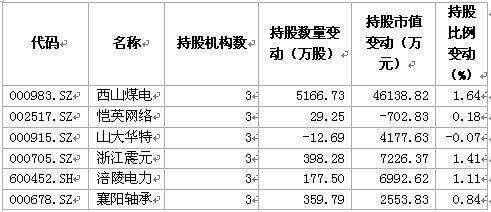 目前来看,山西煤电是社保基金持有规模最大的公司,二季度末的持股市值为9.5亿元,相比一季度末增加了4.61亿元。同时,观察也显示,山西煤电也是二季度社保基金增仓最多的公司,一季度末,公司被社保基金持股占流通股本的比重为2.06%,而二季度末已上升至3.7%,1.64%的上升比例为排在目前社保基金持股比例增长的首位。与此同时,博润传播、浙江震元、大庆华科、永新股份、涪陵电力等公司二季度末社保基金的持股比例也均较一季度末提升较快,目前均超过了1%。