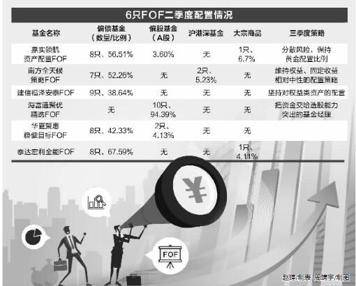 基金二季报陆续披露,首批6只基金中基金(FOF)二季度投资情况出炉。相比一季报数据,二季度FOF超配债券,低配权益资产和大宗商品,多只FOF的货币基金配置比例大幅下降。