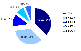 A股整体换手降低,下降趋势与基金换手率一致。2007年A股换手率一度高至774%,在市场经历大起大落,连续两年下跌后,A股市场整体换手率出现了大幅下降,2011年换手率仅220%,与基金换手率基本相当。今年上半年A股整体换手率为99.64%,继续降低,小幅下降的趋势与基金换手率趋势相同。虽然沪深300一度涨幅超过10%,赚钱效应显现,但换手仍然维持低位,市场情绪可见一斑。
