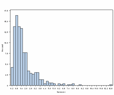 换手率与基金规模呈现负相关,与业绩、类型无直接关联。规模较大的基金受股票流动性的限制往往换手率较低。计算2012上半年基金换手率与基金资产净值的相关系数为-0.38。该数据在2007~2011年分别为-0.43、-0.44、-0.45、-0.43和-0.37,说明基(微博)金换手率与其规模表现出一定的负相关性。从散点图可以看出:大规模基金的换手率通常不高,小规模基金换手率可高可低,部分换手率最高的基金规模均较小。类型上看,主动管理的偏股型基金中,无论是股票型还是混合型基金,换手率差异并不大。可见,基金换手率反映的是基金经理的操作风格,它不是决定基金业绩的因素。