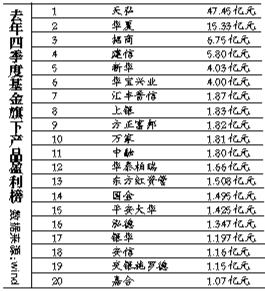 第四季度盈利最好的为天弘基金,其依靠货币基金良好的盈利能力,当季旗下基金盈利达到47.45亿元。华夏基金以15.33亿元紧随其后,其余的基金公司旗下基金利润则未有达到两位数的。