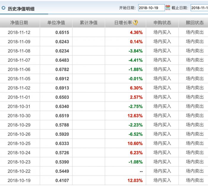 以净值涨幅雄踞全市场第一的易方达证券公司B来看,自10月19日至11月22日,短短大半个月内,该基金单位净值从0.3666元涨至0.6515元。以下是该基金这一期间的净值变化情况: