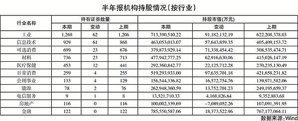 A股上市公司上半年“成绩单”披露的同时,备受投资者关注的保险资金、社保基金等长线资金持股动向也相继浮出水面。从机构持仓变动行业分布来看,机械设备、电子、电力设备、计算机、基础化工、汽车、医药生物七大领域个股增持数量居前。