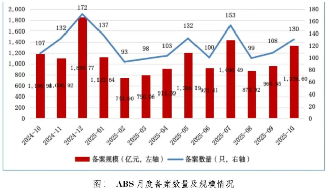 中国基金业协会最新发布的数据显示,2025年10月,资产支持专项计划(ABS)新增备案130只,新增备案规模合计1338.60亿元。
