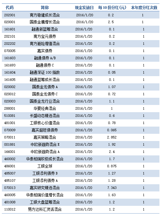 【2016.1.19基金市场信息】