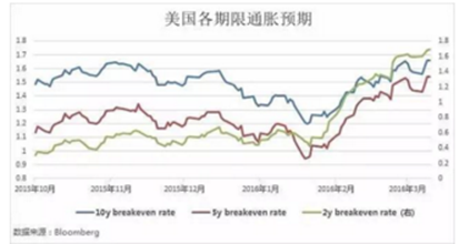 同时欧元区通胀水平仍然徘徊相对低位,但也已经企稳。另外有分析师指出,如果不是调整了统计口径和权重,中国2月CPI增速可能已经达到3%了。近期,贝莱德、太平洋资产管理公司(PIMCO)和摩根士丹利等顶尖机构纷纷建议投资者购买通胀保值债券来对冲通胀风险。可见,近期通胀已经企稳回升,并且市场的通胀预期也在增强。