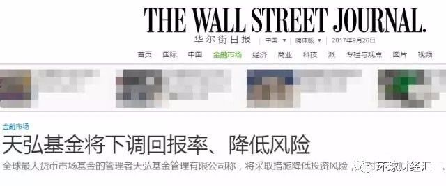 据华尔街中文网透露:天弘基金将下调收益率,以降低风险!