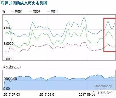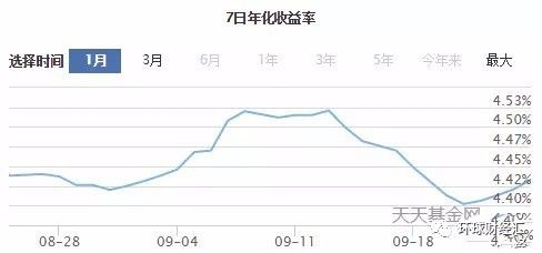 如果我们从货币市场观察近期的走势会发现,九月以来11号和18号左右有两个波峰,对应的上面某货币基金的收益率同步产生变化,而余额宝则几乎和货币市场的利率走势相背离,一直处在下降通道。(PS:想通过余额宝判断市场利率的朋友们可能要好好斟酌一下了)