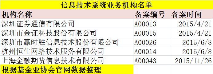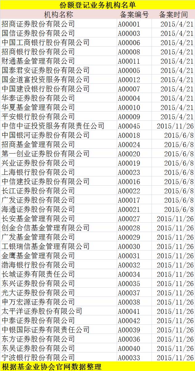 近两年来,中基协已经先后公布了三批次共44家服务机构备案名单。具体包括证券公司21家、基金管理公司8家、商业银行7家、IT公司5家、独立外包机构3家。