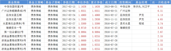 此外, “水星高收益债券1号”, “雄臻资本一号”,“第一创业睿创2号”分别以3.74%,3.63%,2.67%位居第五名到第七名。浙江浙商证券资产管理有限公司旗下的“浙商金惠稳进聚利7号”,“浙商金惠稳进聚利6号”,“浙商金惠稳进聚利4号”,“浙商金惠稳进聚利5号”均以2.55%位居第八到第11名