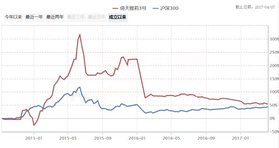 进入2017年以来,A股两市表现比较乐观,沪指从3100点附近稳步上涨到3270点上方,涨幅超过5%。不过,有些明星私募产品还没有从2015年大调整的阴影中走出来,甚至净值屡刷新低。倚天投资的“倚天雅莉3号”就是其中一只。