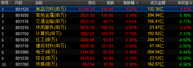 今天的盘面上热点板块轮番表现,食品饮料、交通运输、计算机、有色金属等板块涨幅居前,小金属钴、海南旅游、区块链、锂电池、雄安、民航等热点概念比较活跃。