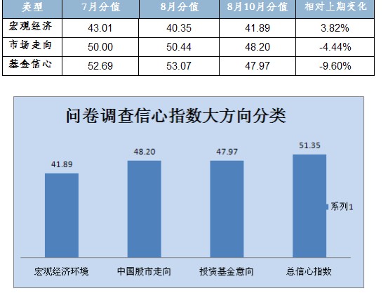 9月份和10月份,市场走出了震荡反复的行情,9月份震荡上涨,10月份又震荡下跌。两个月间上证综指上涨1.04%,收报2,069点,但曾一度击穿2000点;深证成指上涨3.15%,收报8,740点。虽然短期经济数据有所好转,但股市的持续震荡未能改善基金投资者对未来股市的预期,对“中国股市未来的走向”指标分值为48.20,跌破50的位置。