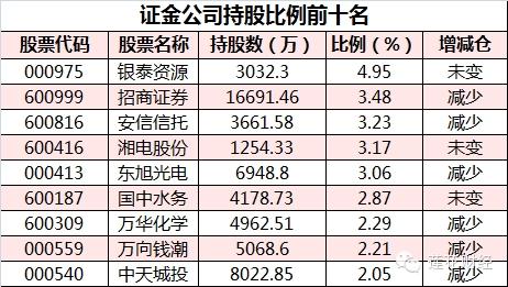 、招商证券(600999,买入)、安信信托(600816,买入)、湘电股份(600416,买入),持股比例分别为4.95%、3.48%、3.22%、3.17%、3.06%。资管计划持股比例相对较小,大部分在1%左右,如联化科技(002250,买入)持股1.08%,机器人(300024,买入)持股0.95%。