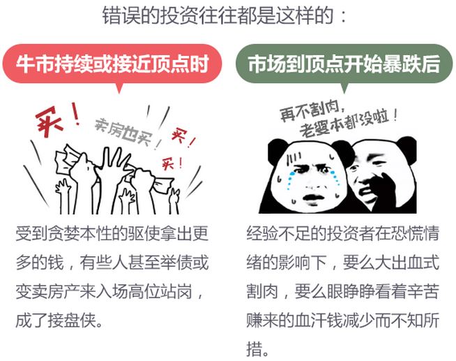 这也是为什么人们往往在牛市时亏损更多的原因。巴菲特有句名言:在别人贪婪时恐惧,在别人恐惧时贪婪。的确,股神确实做到了,但是一般人想像股神那样并不容易。这不仅需要坚实的金融学、经济学基础来看懂真正的价值,还需要日积月累的实践和强大的心理素质、完善的投资理念。对于初学者很难规避任性的弱点。有些基民可能又要怨了:这可如何是好,我就是管不住自己的手啊。没关系,基金定投来帮你。