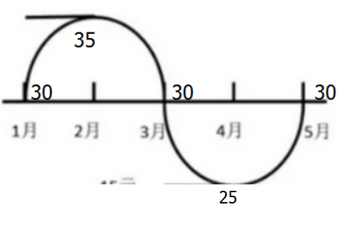 假如上面的股价图波动很小,1月份的价格仍然是30元,但是2月份的价格变为35元、3月为30元、4月为25元,5月份又回到原价30元。