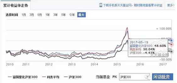 富国沪深300跑赢48%-(-4%)=52% ,成立7年战胜指数52%,平均每年战胜7个百分点。