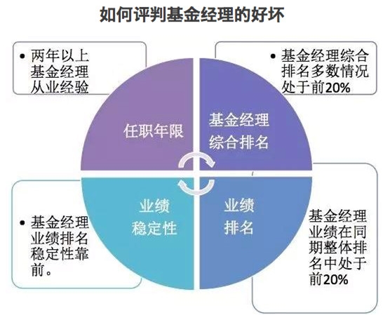 如图所示,最好选择两年以上从业经验,业绩突出且较为稳定的基金经理。稳定要从两方面看,一方面管理业绩比较稳定,要横向看他在整体行业中的位置。因为这考验了基金经理的择时能力、选股能力、面对市场下跌的应变能力等等。这些指标很少有公开的网站可以直接查到,需要很多的大数据运算。