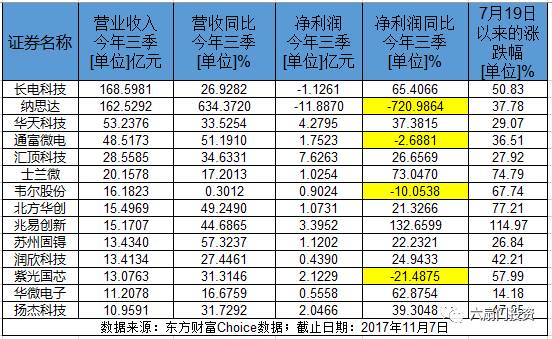 根据最新的三季报,在57家半导体产品和设备公司中,2017年前三季度有53家盈利,盈利超过亿元的有30家,其中三安光电(600703)、隆基股份(601012)盈利超过10亿。