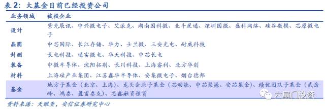 所以,资本市场的炒作有时候真的只是炒作,脱离了真实的基本面。而芯片这个产业属于真正的知识密集型、资金密集型产业,投入与产出的周期可能十分长。因此我国的模式是以国家行为来干预,2014年成立了国家集成电路产业投资基金,在产业链中侧重对龙头企业的扶持。笔者认为,大基金重点支持的这些公司值得我们重点关注,一方面大基金带来资金支持,另一方面也会得到相关的技术支持。