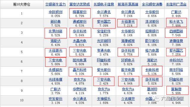 重仓股中的大族激光属于晶元切割龙头,紫光国芯是储存器领域的代表性公司。