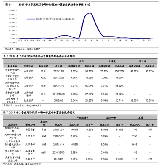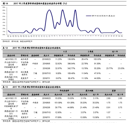 2季度股票多头和固定收益策略私募基金平均收益为正,其余策略平均收益为负。标准差较大的策略为事件驱动和股票多头策略。其中2季度收益为正的基金数量占比最高的策略是固定收益和宏观策略,两者均超过50%。事件驱动、市场中性、套利策略和管理期货策略大部分基金收益为负。