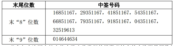 凡参与本次网上按市值申购定价发行的投资者持有的申购配号尾数与上述号码相同的,则为中签号码。中签号码共有 45,450 个,每个中签号码只能认购 1,000 股广东骏亚 A 股股票。