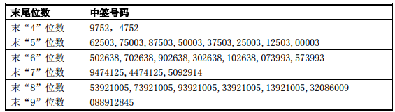 凡参与网上发行申购春秋电子 A 股股票的投资者持有的申购配号尾数与上述号码相同的,则为中签号码。中签号码共有 30,825 个,每个中签号码只能认购 1,000 股春秋电子 A 股股票。