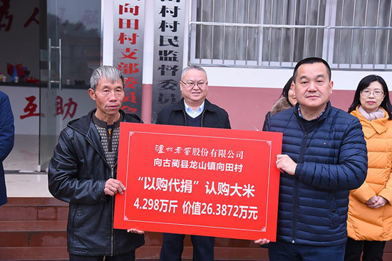 2020年1月3日,泸州老窖股份有限公司党委书记、董事长刘淼带领公司各部门、基层党组织负责人组成新春慰问团,前往泸州老窖对口帮扶的古蔺县龙山镇向田村开展新春慰问活动。