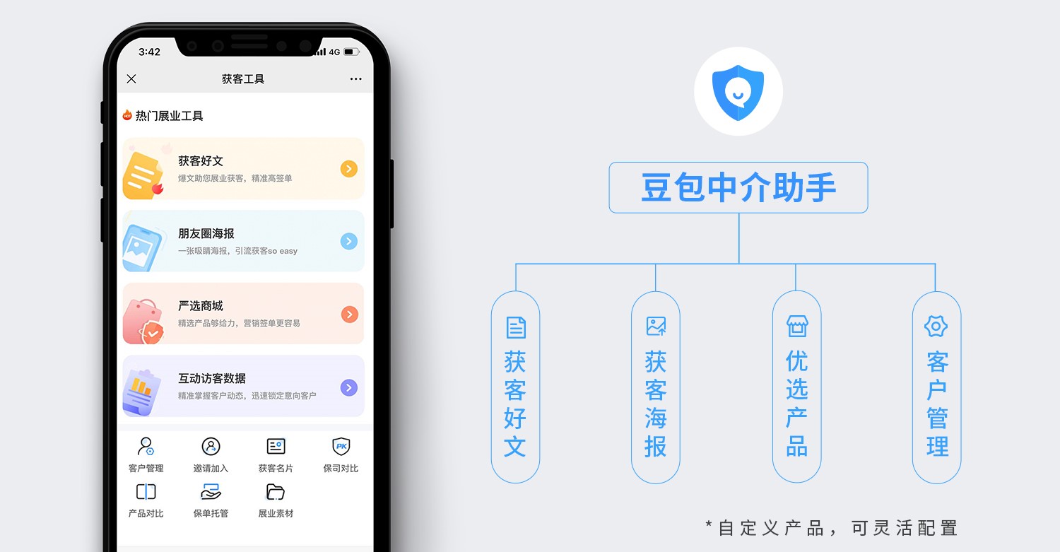 在豆包数云SaaS系统成功服务数百家保险机构的创新实践和摸索中,豆包网COO秦嵩还发现行业一个市场缺口:产品对接难、线上获客难成为阻碍保险中介机构尝试线上化的两大障碍。基于当前“后疫情时代”上百万保险代理人无法线下展业,亟需面临线上转型的背景下,保险服务线上化运营模式呼之欲出。豆包网近期为传统经代渠道迅速推出去中心化的综合运营解决方案,工具型产品 “保险中介助手”小程序于日前火热上线。