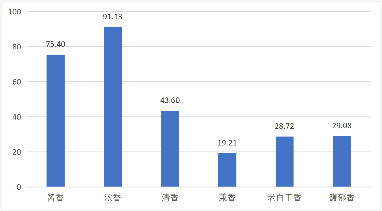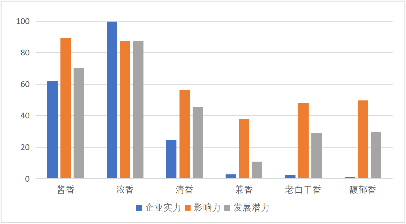 主流白酒香型竞争力:浓香、酱香位列第一梯队