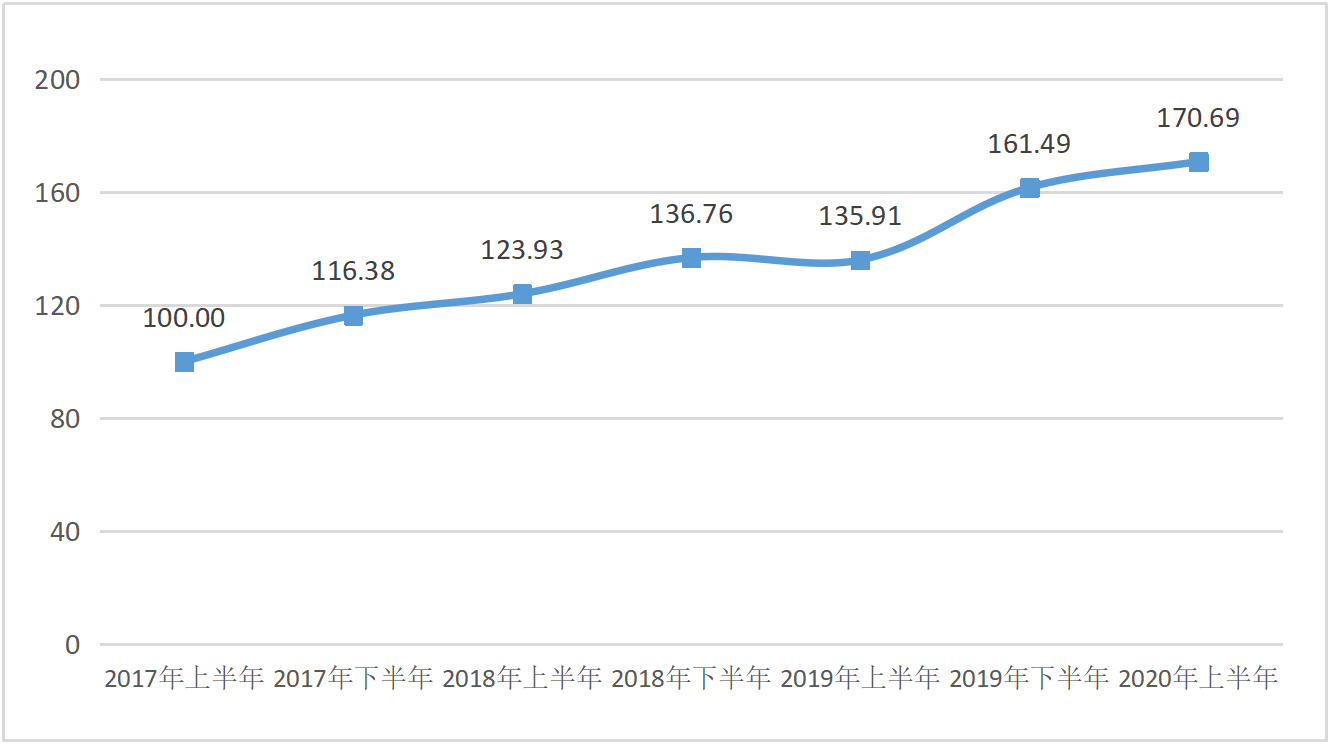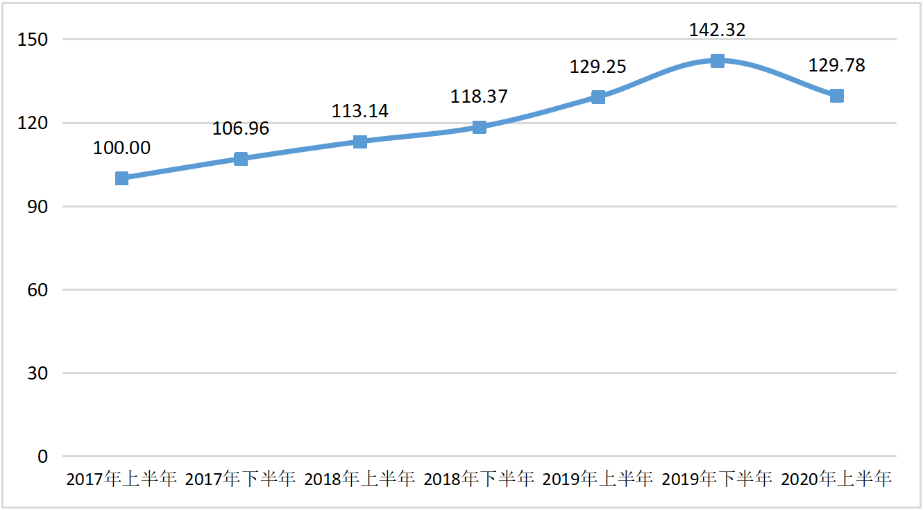 茅台品牌传播力指数,反映一定时期茅台品牌传播的总体水平。2020年上半年虽然受到疫情影响,茅台品牌传播力仍维持在去年同期水平,指数值达到129.78点。