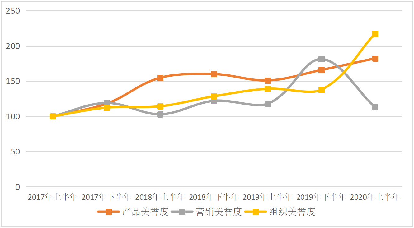 其中,产品美誉度指数仍然保持上涨态势,达到182.17点。组织美誉度取得大幅提升,达到217.07点,公众对茅台的信任程度持续提高。疫情期间,茅台集团履行社会责任,累计捐款超1.1亿元,用实际行动为抗击疫情作出贡献。与此同时,疫情对企业的管理能力也是一次考验。茅台集团严明政治纪律和工作纪律,制定相应的监督检查方案,实施疫情防控工作专项监督检查,为打赢疫情防控阻击战和茅台集团复工复产攻坚战提供了坚实的监督保障。良好的管理能力和积极的社会责任意识是茅台持续得到公众信赖和支持的基础。