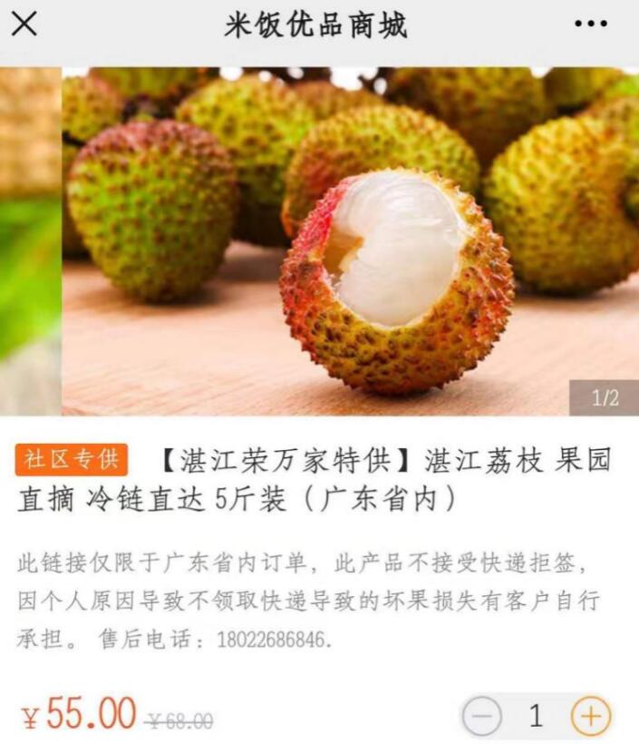 其实,拼团并不新鲜。但此次荔枝拼团就很不一样了,其交易模式是利用社区所在的优米便利店前置仓储优势,设置分拣、配送于一体的服务站。业主直接在米饭公社APP端下单选购荔枝后,果园直摘,冷链运输到达优米便利店后,再从服务站拣货由专职人员配送到家。